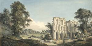 Paul Sandby, "Roche Abbey, Yorkshire," c.1770s. Watercolour over graphite, 300 x 588 mm. Royal Academy of Arts, London. Photo © Royal Academy of Arts/Slingsby