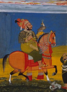 "Kunwar Anop Singh of Devgarh Riding with a Falcon" Devgarh, Mewar, Rajasthan attributed to Bakhta, ca. 1776 © Museum Rietberg Zurich.