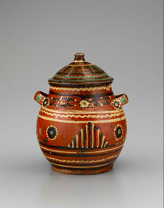 Sugar Pot, Alamance County, North Carolina, 1790–1800. Lead-glazed earthenware. H. 10 in. Courtesy, Old Salem Museums & Gardens. Photo by Gavin Ashworth.