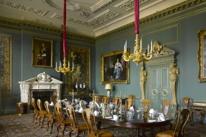 - The furnishings underwent major conservation work – two giltwood torcheres, three tapestries, the table, two large Reynolds portraits. Two new chandeliers were also made by Coade Ltd and subsequently gilded by Lord Pemboke’s sister.
