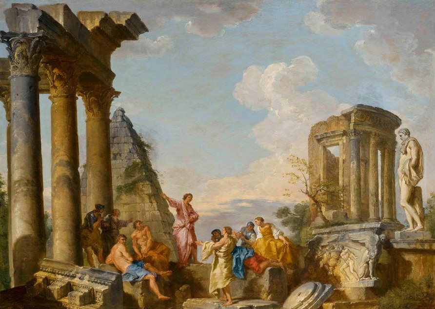 Giovanni Paolo Panini, "Architectural Capriccio with an Apostle Preaching," 1755-60, oil on canvas, 20 7/8 x 28 7/8 inches (52.9 x 73.5 cm). Courtesy Sperone Westwater, NY.