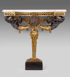 Small Console Table with Supporting Figures of Nubians (one of a pair), c.1780, gilded and painted wood and marble slab (NY: The Frick Collection), photo by Michael Bodycomb