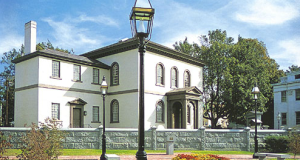 Touro, the oldest standing synagogue in the United States, remains virtually unaltered since it was completed and dedicated in 1763. Designed by Peter Harrison, a British American merchant, sea captain, and self-taught architect, the two-story Palladian structure accommodates the religious needs of a typical Jewish congregation (for example, the ark containing the sacred scrolls is positioned so that worshipers can pray facing Jerusalem), while also reflecting New Englanders’ preference for restraint. Twelve Ionic columns (one for each tribe of Israel) support a second-story gallery; Corinthian columns ringing the gallery support the domed ceiling. Declared a National Historic Site in 1946, the synagogue became a National Trust Historic Site in 2001. . . .