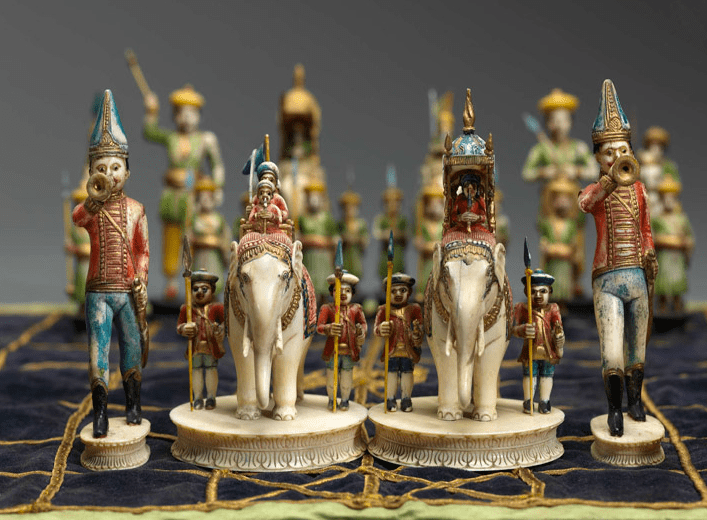 Chess has been called ‘The Royal Game’ not only because it originated in such royal courts but also because, across all eras and cultures, chess sets have been created from gold, silver, ivory, gemstones, crystal, and other opulent materials by the world’s finest craftsmen. The world-renowned Fabergé, Meissen, and Wedgewood workshops and many others were eager to join ranks with generations of elite anonymous craftsmen who worked for their ruler, church, or wealthy civil patrons to craft chess sets recognized as consummate works of art.