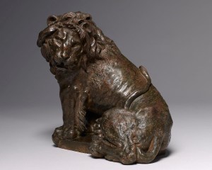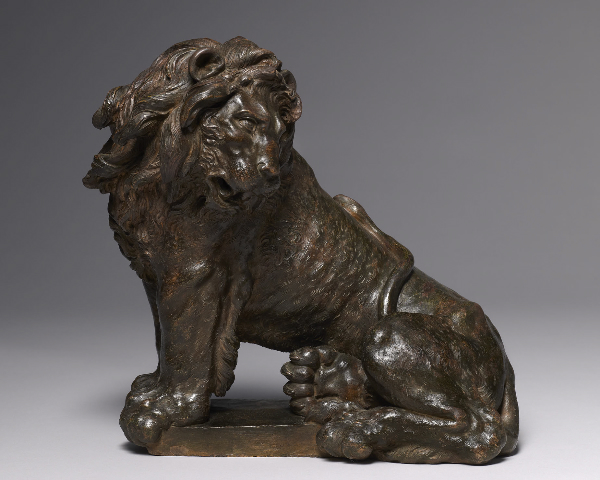 Giovan Battista Foggini (Florence, 1652-1725) "Lion," ca. 1715 Modelled hollow terracotta; original bronze patina imitation Base: 18.5 x 9.6 cm Lion: 26 x 24.4 x 17.6 cm