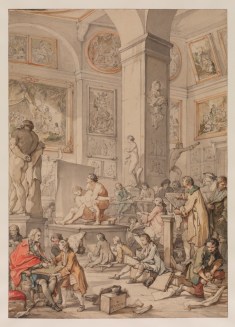 Charles Joseph Natoire, "Life Class at the Académie Royale," 1746, watercolour, chalk (black) on paper, 454 x 323 mm, © The Courtauld Gallery, London