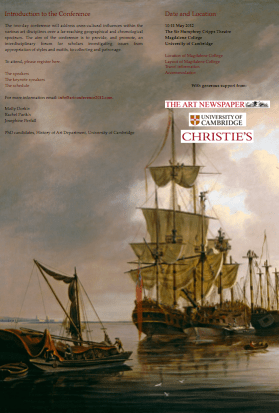The University of Cambridge History of Art Graduate Conference, Beyond Borders: The Impact of Cultural Exchange in Art History will be held on 10-11 May 2012 at Magdalene College, University of Cambridge. The two-day conference will address cross-cultural influences within the various art disciplines over a far-reaching geographical and chronological spectrum. The aim of the conference is to provide, and promote, an interdisciplinary forum for scholars investigating issues from appropriation of styles and motifs, to collecting and patronage. For more information and to register to attend, please visit: www.artconference2012.com. Please note that registration closes 1 May and seats are limited. For any queries, please contact us at: info@artconference2012.com