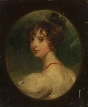 The oval portrait depicts the 16-year-old sitter in motion, her head turned towards the viewer in a pose that has a long tradition in the history of portraiture. However, Lawrence brings a freshness to the work, reflected in the informality and economy of his brushwork. The Hon. Emily Lamb went on to become an influential, politically prominent society hostess. She first married Peter Leopold Clavering-Cowper, 5th Earl Cowper. After his death, in 1839 she married Henry John Temple, 3rd Viscount Palmerston, who served twice as Prime Minister between 1855 and 1858 and again from 1859 to 1865. Her brother, Viscount Melbourne, also served as Prime Minister. His wife, Lady Caroline Lamb, was notorious for her affair with Lord Byron.