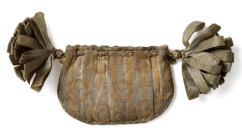 Sweetmeat purse, French, ca. 1670–80. Silk and metal brocade, braid and ribbon.