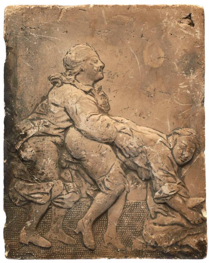 Detail of one of eight eighteenth-century plaster tiles discovered in 1962. Click on the image for the full view of another tile (with usual warnings about sexually explicit images).