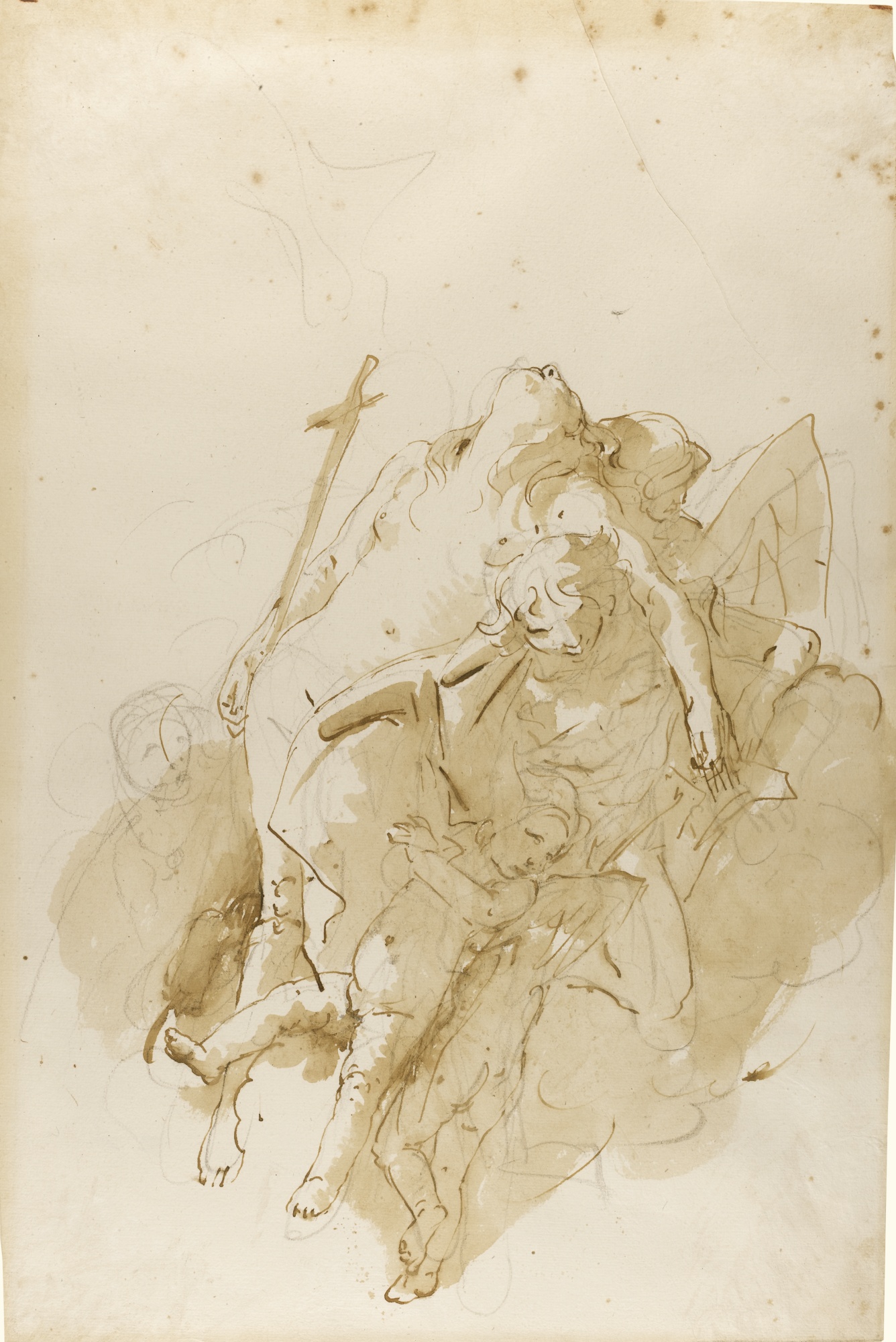 Lot 422: Giovanni Battista Tiepolo, The Assumption of Mary Magdalene, pen and brown ink and wash over black chalk