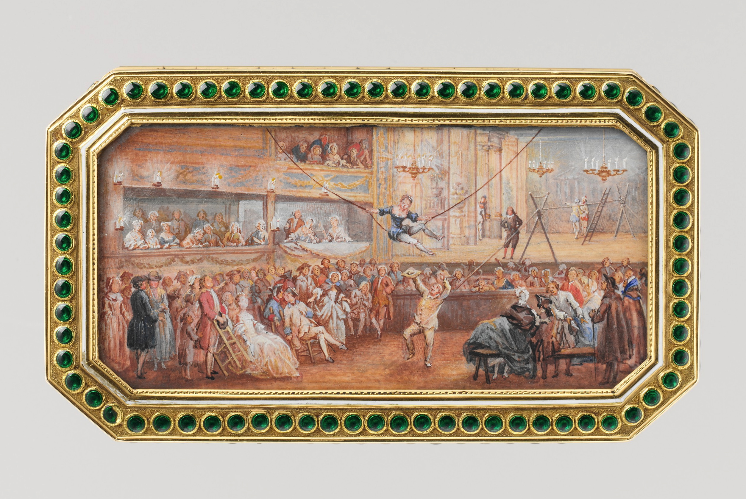Joseph Étienne Blerzy, Snuffbox with theatrical scenes of a rope dancer and a puppet show by by Louis Nicolas van Blarenberghe and Henri Joseph van Blarenberghe, 1778–79 (New York: The Metropolitan Museum of Art. Gift of J. Pierpont Morgan, 1917; 17.190.1130). A high resolution image is available here»