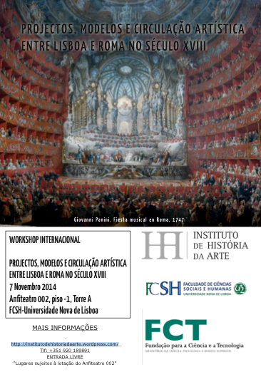 This international workshop deals with the richness and complexity of the international relations between Lisbon and Rome in the eighteenth century. The transcendence of the Roman Paradigm is well documented in Portugal, but the Lusitanian Rome is still a topic of research that deserves better attention. From a multidisciplinary approach the participants of this workshop are trying to shed some light on a some sort of Iberian Grand Tour.