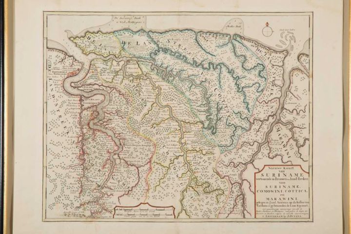 Suriname map, 1718. Nieuwe Kaart van Suriname vertonende de stromen en land-streken van Suriname, Comowini, Cottica, en Marawini; Amsterdam, 1718 (Collection of Leonard L. Milberg).