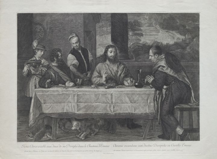 Antoine Masson, after Titian, Supper at Emmaus, second half of the seventeenth century, engraving, 452 x 586 mm