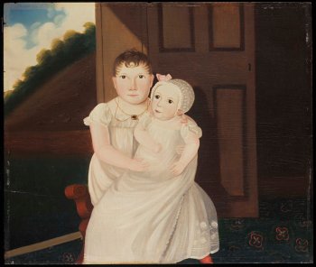 Two Children, America, ca. 1810, oil on pine panel (Colonial Williamsburg: 1954.100.2, from the collection of Abby Aldrich Rockefeller, gift of the Museum of Modern Art).
