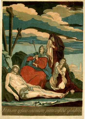John Baptist Jackson, Lamentation over the Body of Christ, ca. 1740–44, woodcut with embossing (London: The British Museum).