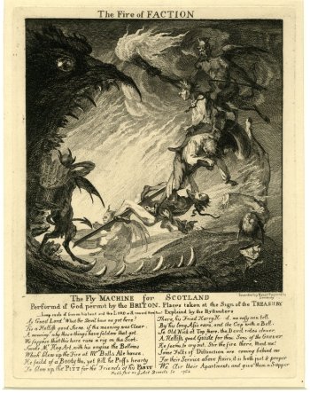 Paul Sandby, The Fire of Faction. The Fly Machine for Scotland, 1762, etching (London: The British Museum).