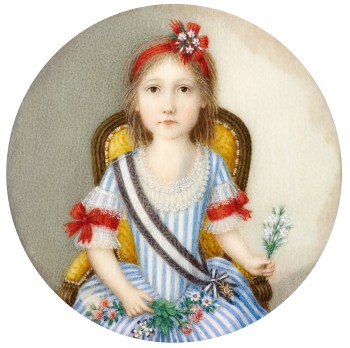 Image: Francisca Efigenia Meléndez y Durazzo, Portrait of a a Seated Girl Holding Flowers, ca. 1795, tempera on ivory, 5 × 5 cm (Dallas: Meadows Museum, SMU, MM.08.01.20).