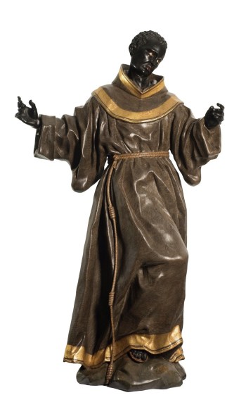 Attributed to Juan Pascual de Mena, Saint Benedict of Palermo, 1770–80, coniferous wood, pigment, gold (Detroit Institute of Art).