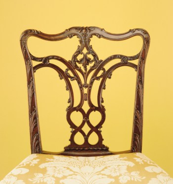 The exhibition will be arranged thematically in two adjoining rooms (galleries 751 and 752, on the second floor of The American Wing). The exhibition will open with the first edition of Chippendale’s Director paired with three chairs signifying the geographic and continuing reach of his work—one made in Chippendale’s London workshop; one made around 1769 for General Cadwalader’s posh townhouse by Philadelphia craftsmen; and one designed by Venturi and Brown as a modern reflection on the Chippendale chair. The gallery will also feature printed works illustrating the context in which Chippendale conceived his book, including popular publications by furniture designers on the European continent, such as Daniel Marot and François Cuvillies, and the few English publications that preceded Chippendale’s work. Alongside the Director, publications of the works of Inigo Jones and Sir Christopher Wren will denote how England embraced print culture as a way to celebrate its own artistic achievements, and how artists and craftsmen used the medium as a promotional tool. The works in this gallery will stand against the backdrop of the permanently installed Rococo-style architectural woodwork and wallpaper from the Great Hall of the Van Rensselaer House, allowing the visitor a direct window into the early impact of European print culture in America.