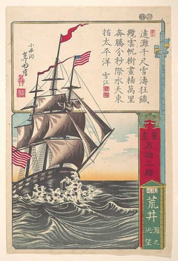 Utagawa Yoshimori, An American Sailing Ship off Arai, 1872; polychrome woodblock print, ink and color on paper (New York: Metropolitan Museum of Art, 2007.49.243).