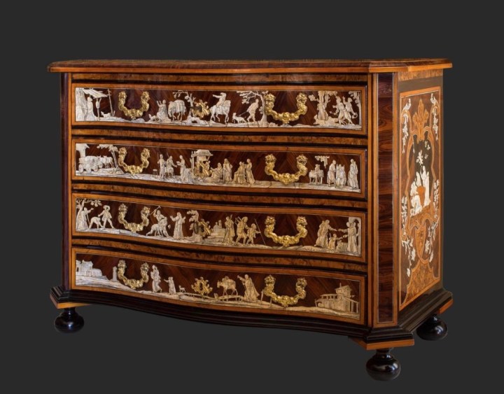 Luigi Prinotto, Chest with four drawers, depicting stories of Saint Bruno and the foundation of the Carthusian Order, 1736