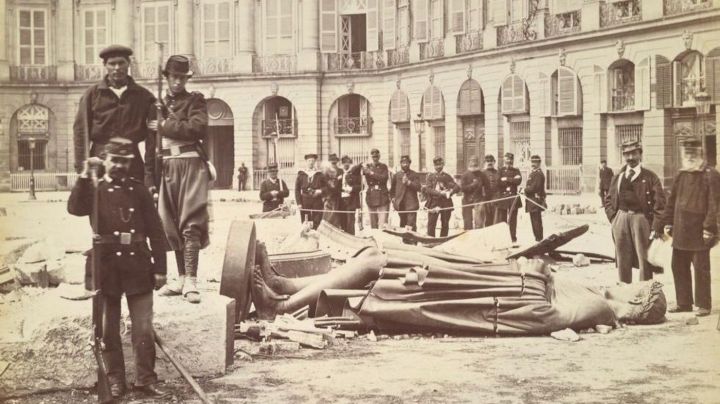 Bruno Braquehais, Statue of Napoleon I after the Toppling of the Vendôme Column, 1871