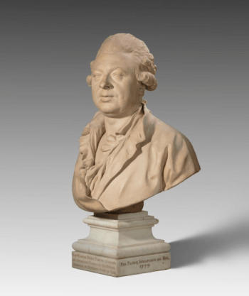 Augustin Pajou, Jean-François Ducis, 1779, terracotta on marble socle, bust 23 inches high (Kansas City: Nelson-Atkins Museum of Art, acquired through the McGreevy Family through the Westport Fund in honor of the Fiftieth Anniversary of the Nelson-Atkins, F83-22).