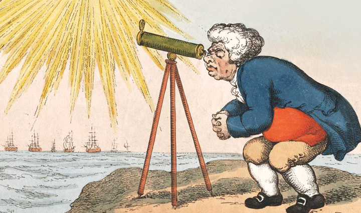 Thomas Rowlandson, after George Moutard Woodward, John Bull Making Observations on the Comet (detail), hand-colored etching, published by Thomas Tegg, 10 November 1807 (Farmington: Lewis Walpole Library). More information is available here.