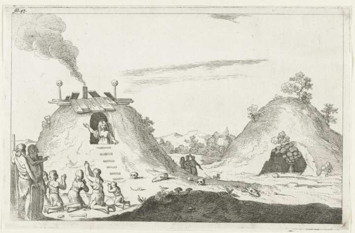 A Priestess Speaking from within a Prehistoric Barrow in Drenthe, from Johan Picardt, Korte beschryvinge van eenige vergetene en verborgene antiquiteten (Amsterdam 1660), f. 47 (Rijksmuseum, RP-P-OB-77.857).