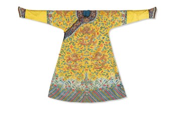 Imperial embroidered silk robe dating from the end of the Qianlong period (1736–1795). Estimate: €80,000–120,000.