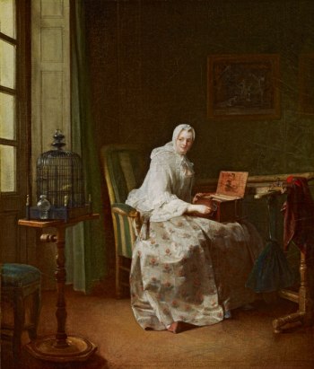 Jean-Siméon Chardin, Lady with a Bird-Organ, 1753 (?), oil on canvas (lined), 20 × 17 inches (New York: The Frick Collection).