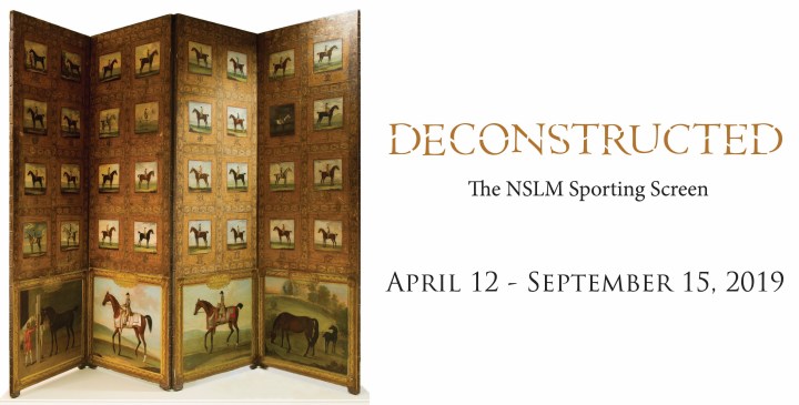 Deconstructed: The NSLM Sporting Screen centers on a unique decorative object from the NSLM’s permanent collection. Recently conserved, the four-panel screen is comprised of paintings and prints showing 18th-century racing portraits on one side and manège training (an early form of dressage) on the other. The exhibit will cast light on a captivating era in British sport, art, and literature.