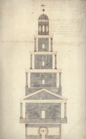 Thomas Jefferson, Monticello: Observation Tower, recto, ca. 1771, pen and Ink with gray wash (Boston: Massachusetts Historical Society, Coolidge Collection of Thomas Jefferson Manuscripts).