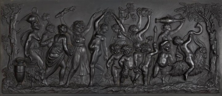 Bacchanalian Triumph, Wedgwood black basalt rectangular plaque, late eighteenth or early nineteenth century. Copied from a bas-relief by Claude Michel Clodion (1738–1814).