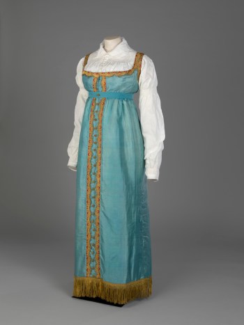 Russian style dress belonging to Princess Charlotte, ca. 1817, silk, gold, metallic and silk lace, gold metallic fringe (Royal Collection Trust, 74709).