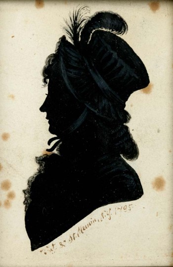 Thomas Bluget de Valdenuit (1763–1846) and Charles Balthazar Julien Févret de Saint-Mémin (1770–1852), Silhouette portrait of an unidentified woman, 1795, black ink, gouache, and graphite on paper laid on thin card (New-York Historical Society, Purchase, The Louis Durr Fund, 1945.344).