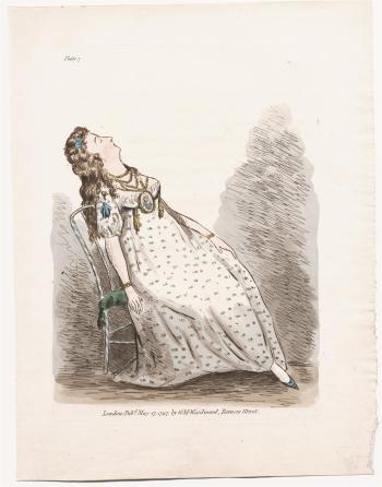 G. M. Woodward, ‘The Art of Fainting in Company’, 1797, hand-colored etching, Plate 7 from ‘An Olio of Good Breeding: With Sketches Illustrative of the Modern Graces!!’ (London, 1797).