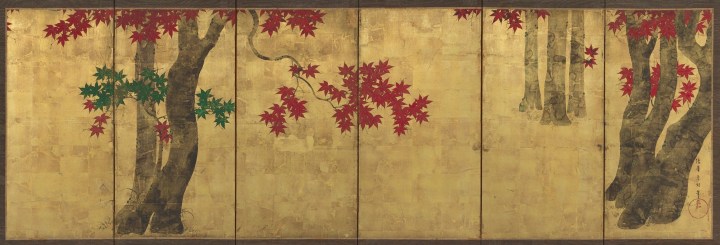 • Tawaraya Sōri’s Autumn Maple Trees (second half 18th century), one of only a handful of works that survive by the artist and widely regarded as his masterpiece [School of Kōrin section]