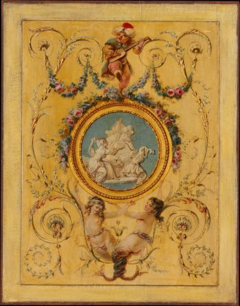 Attributed to Jules-Hugues Rousseau, Door panel from the ‘Cabinet Turc’ of Comte d’Artois at Versailles, 1781, oil on oak; overall painted surface: 32 × 24 inches (New York: The Met, Gift of J. Pierpont Morgan, 1906, 07.225.458a).
