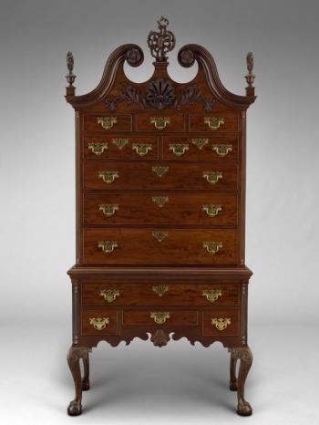 High Chest, Philadelphia, ca. 1770, mahogany, sabicu, yellow pine, and tulip poplar (Colonial Williamsburg Foundation, bequest of Joseph and June Hennage, 1989-450).