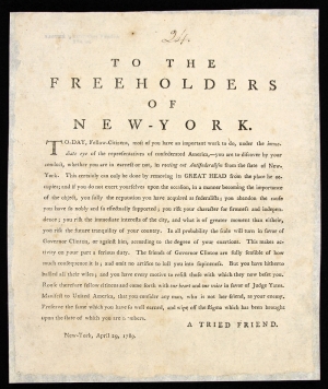 To the Freeholders of New-York, April 29, 1789, DeWitt Clinton Broadside Collection, GR 78-10.24