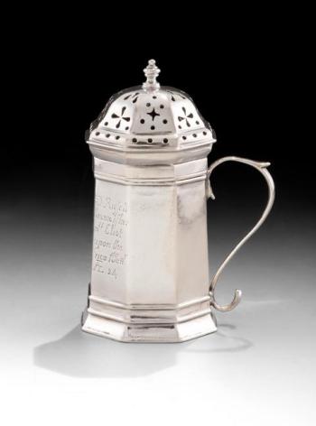 Pepper Box, John Blowers, Boston, ca. 1741, silver (Colonial Williamsburg Foundation, bequest of Joseph and June Hennage).