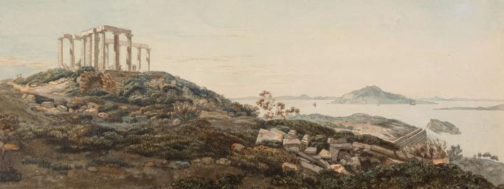 William Pars, Temple of Poseidon at Sounion, 1764, pen and grey ink with watercolour and bodycolour and some gum arabic