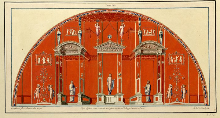 Marco Carloni, Franciszek Smuglewicz, and Vincenzo Brenna, plate nine from Vestigia delle Terme di Tito e Loro Interne Pitture, 1776–78, hand-coloured etching (London: The British Museum).