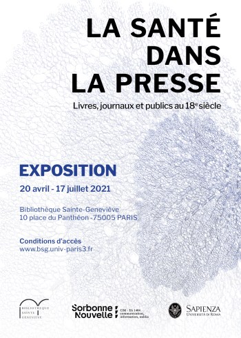 Cette exposition porte avant tout sur des questions de santé hors des milieux médicaux, auprès d’un public non spécialiste. En s’appuyant sur les fonds de la bibliothèque Sainte-Geneviève, il s’agit de montrer l’importance des périodiques et des livres imprimés dans la mise à disposition de savoirs et des nouvelles sur la santé, ainsi que de souligner la visibilité des ouvrages de médecine auprès du grand public.