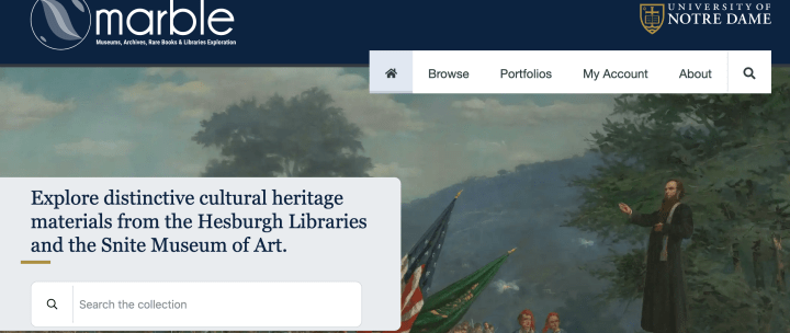The Hesburgh Libraries and the Snite Museum of Art at the University of Notre Dame have launched Marble (Museum, Archives, Rare Books, and Libraries Exploration)—an online teaching and research platform designed to make distinctive cultural heritage collections from across the University accessible through a single portal.