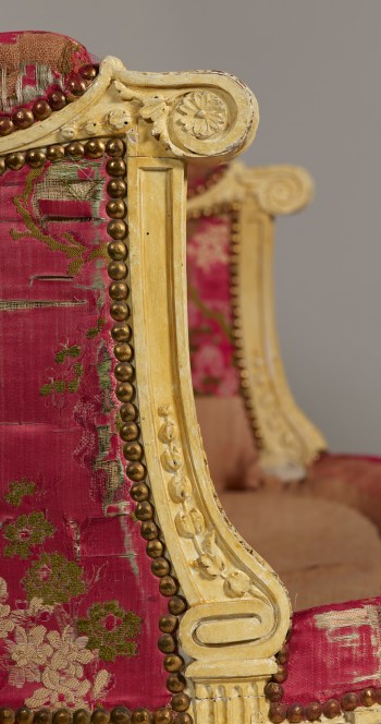 “Remarkably, this armchair still looks very much as it did when delivered to its first owner in the late 1700s,” says Charissa Bremer-David, curator of the exhibition. “Though the varnish on the wood has yellowed and the worn textile cover has gently faded, the finish and materials have endured without refurbishment or reupholstering. This armchair, therefore, is an important source of information about how late 18th-century French seat furniture was produced.”