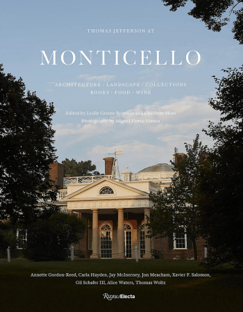Leslie Greene Bowman and Charlotte Moss, eds., with photographs by Miguel Flores-Vianna, and contributions by Annette Gordon-Reed, Carla Hayden, Jay McInerney, Jon Meacham, Xavier Salomon, Gil Schafer, Alice Waters, and Thomas Woltz, Thomas Jefferson at Monticello: Architecture, Landscape, Collections, Books, Food, Wine (New York: Rizzoli Electa, 2021), 208 pages, ISBN: 978-0847865222, $45.
